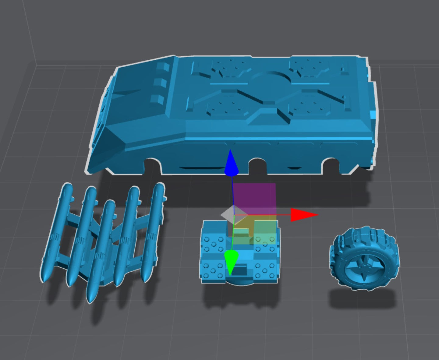 hull, 2 turret choices and 1 wheel.